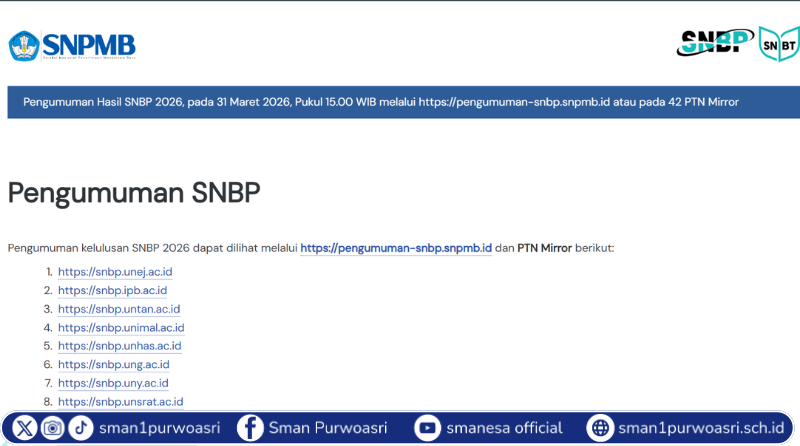 Pengumuman Kelulusan SNBP Tahun 2026